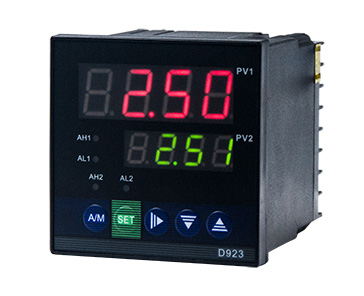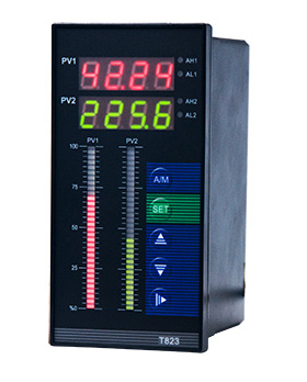 HWP-LED系列双回路数字/光柱显示控制仪采用微处理器进行控制运算。该仪表集数字仪表与模拟仪表于一体,可对温度、压力、液位、速度等测量信号进行数字量显示控制(高亮度LED数码显示)及相对模拟量显示(光柱显示),使测量值的显示更为清晰直观。