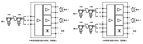 Q-MP系列高速配电器给二、三线制变送器提供隔离的电源电压,将变送器产生的直流电流信号经过隔离传送,转换成所需的信号给其它仪表。可以与单元组合仪表及DCS、PLC等系统配套使用,给予现场仪表信号隔离、信号转换、信号分配、信号处理等,从而提高工业生产过程自动控制系统的抗干扰能力,保证系统的稳定性和可靠性。本产品输入、输出、电源三隔离。
