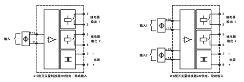 Q-C系列智能开关量转换器将接收来的开关量输入信号转换成隔离的开关量信号输出,为外部系统提供所需的开关量控制或报警信号。它具有输入状态检测指示,可进行正反向控制。可以与单元组合仪表及DCS、PLC等系统配套使用。本产品品种分为一进一出、一进二出、二进二出,且输入、输出、电源三隔离。